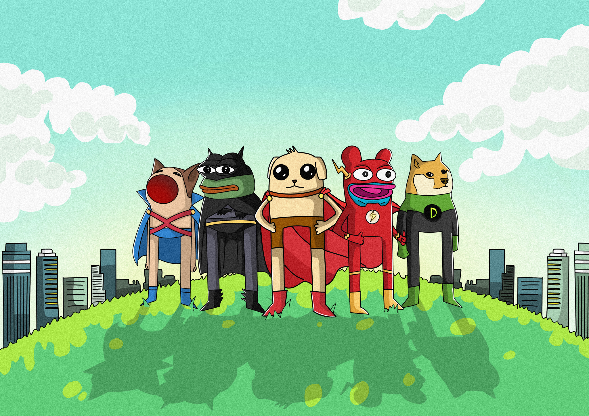 pwup along with his crew of super memes, petrols the city of solana, looking for coins worthy of joining the justice meme legue of billion dollar super heros